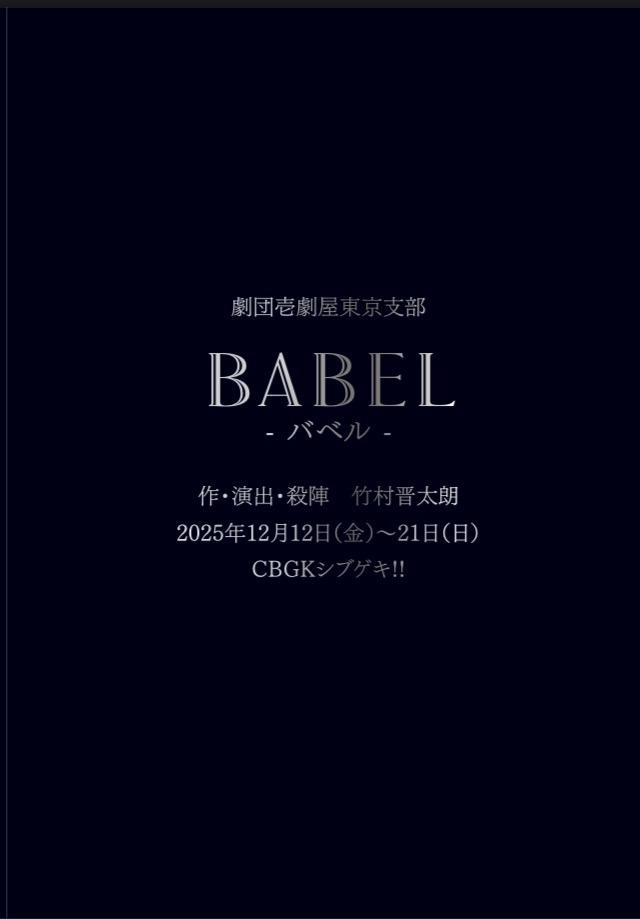 劇団壱劇屋東京支部「BABEL」のパンフレットです。 限定ビジュアルを使用! キャストへのQ&Aや、稽古場写真など収録しています。全20ページ。 サイズ:A4 ※商品画像はイメージです。実際の商品とは異なる場合がございます。 ※商品の初期不良以外での返品・交換はいたしかねます。何卒ご了承ください。 ※発送時期は1月中旬を予定しております。