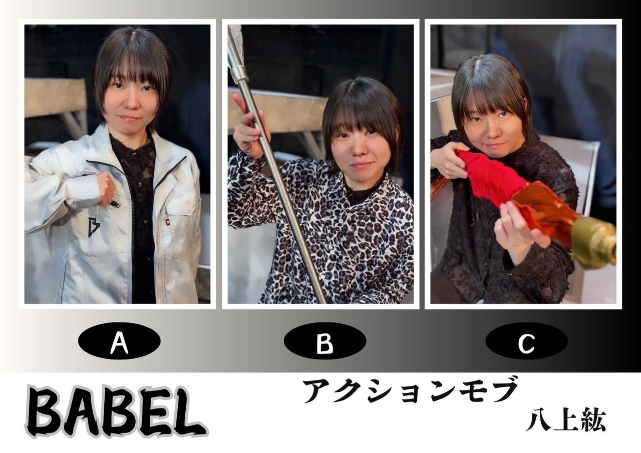 「バベル」アクションモブ(八上紘)の衣装チェキです。